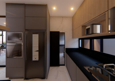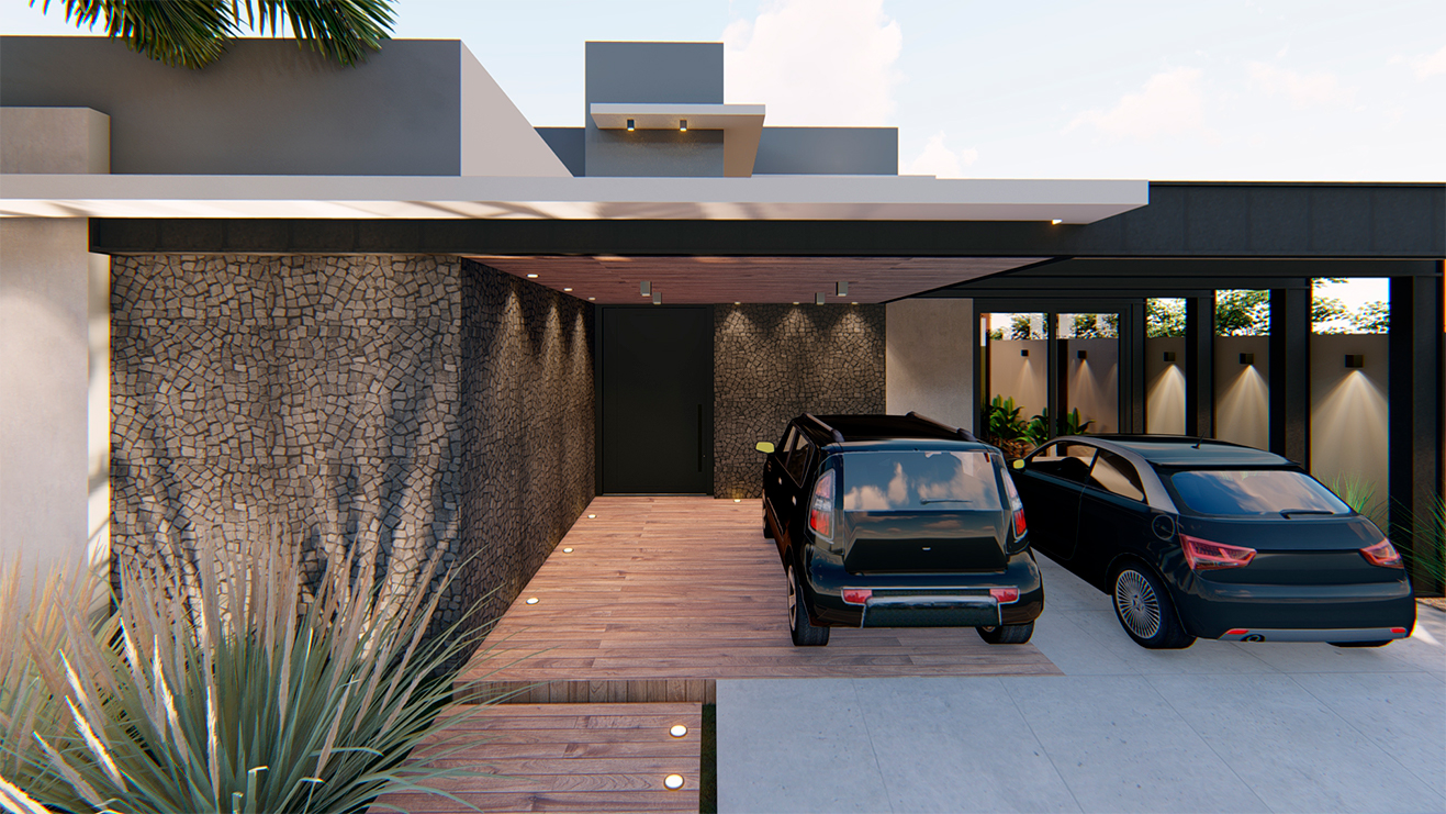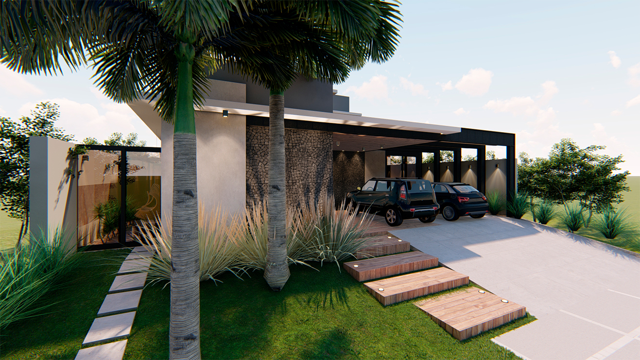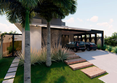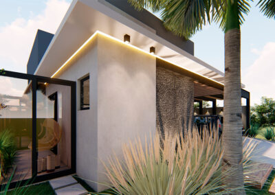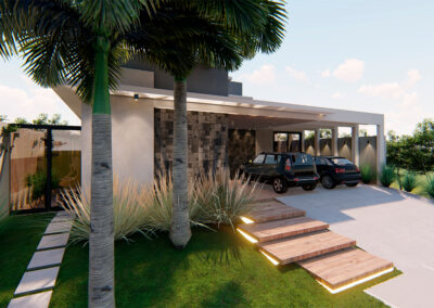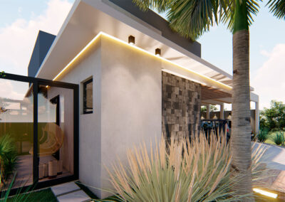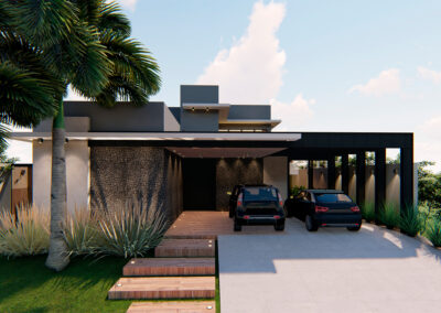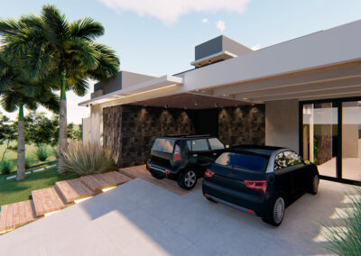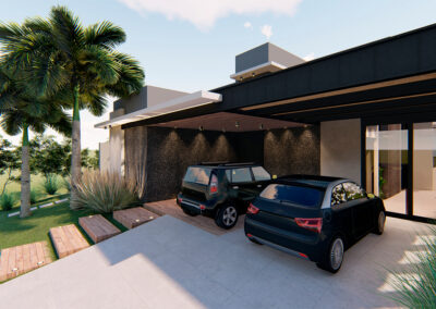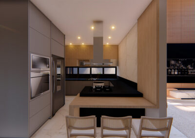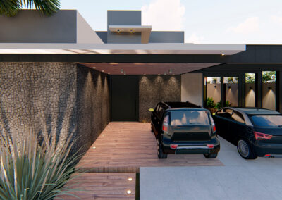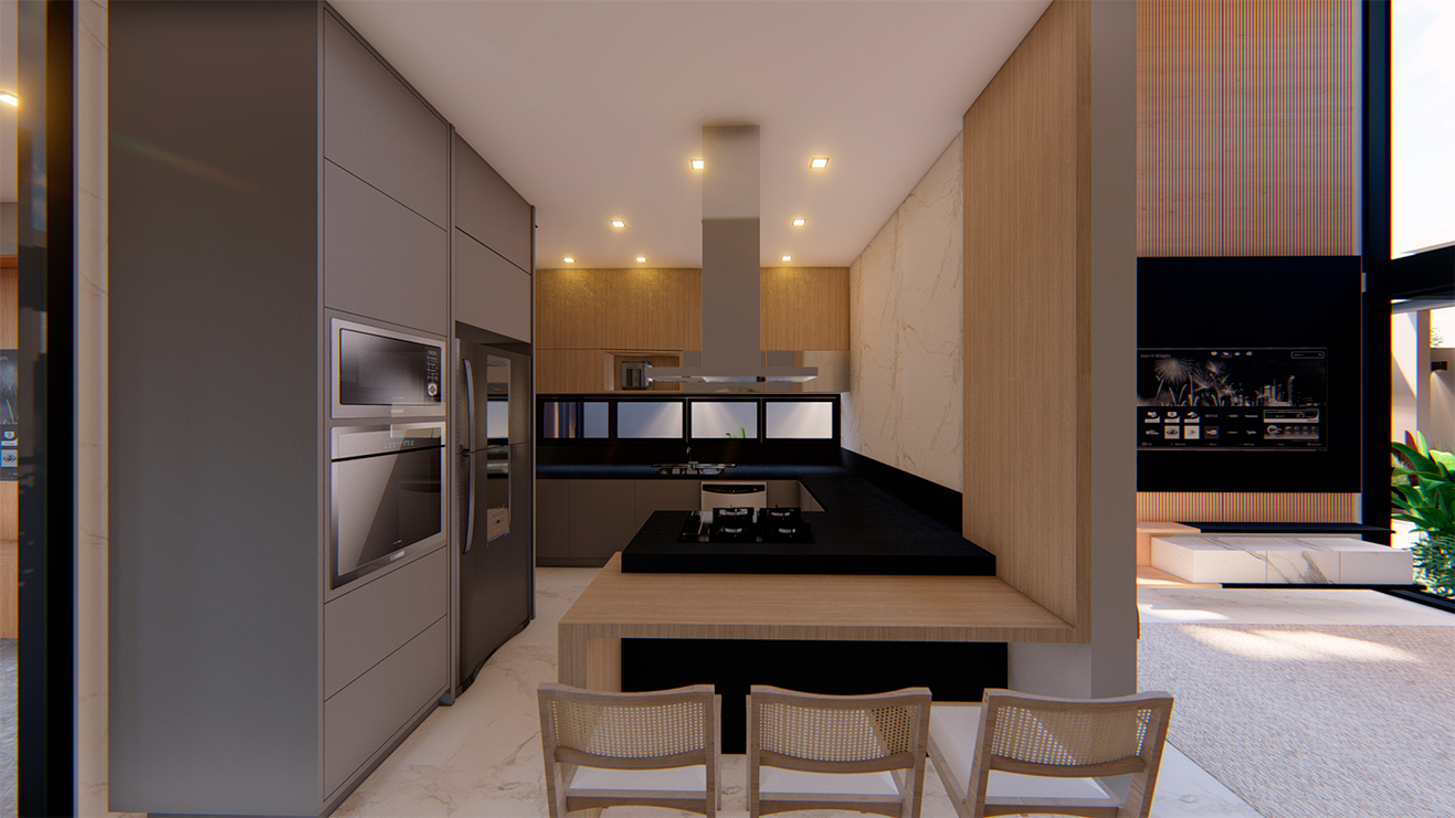 Os ambientes internos são integrados e flexíveis, com a presença de sistemas de automação que controlam iluminação, climatização e segurança. Grandes janelas e portas de vidro permitem a entrada abundante de luz natural e oferecem vistas panorâmicas. A estrutura é sustentada por elementos metálicos e concreto, criando um contraste visual entre a solidez e a transparência. O layout funcional e a integração de tecnologia refletem uma abordagem moderna e eficiente, proporcionando conforto e sofisticação.