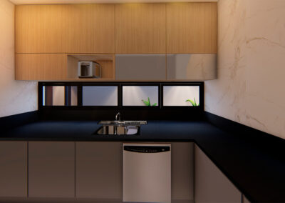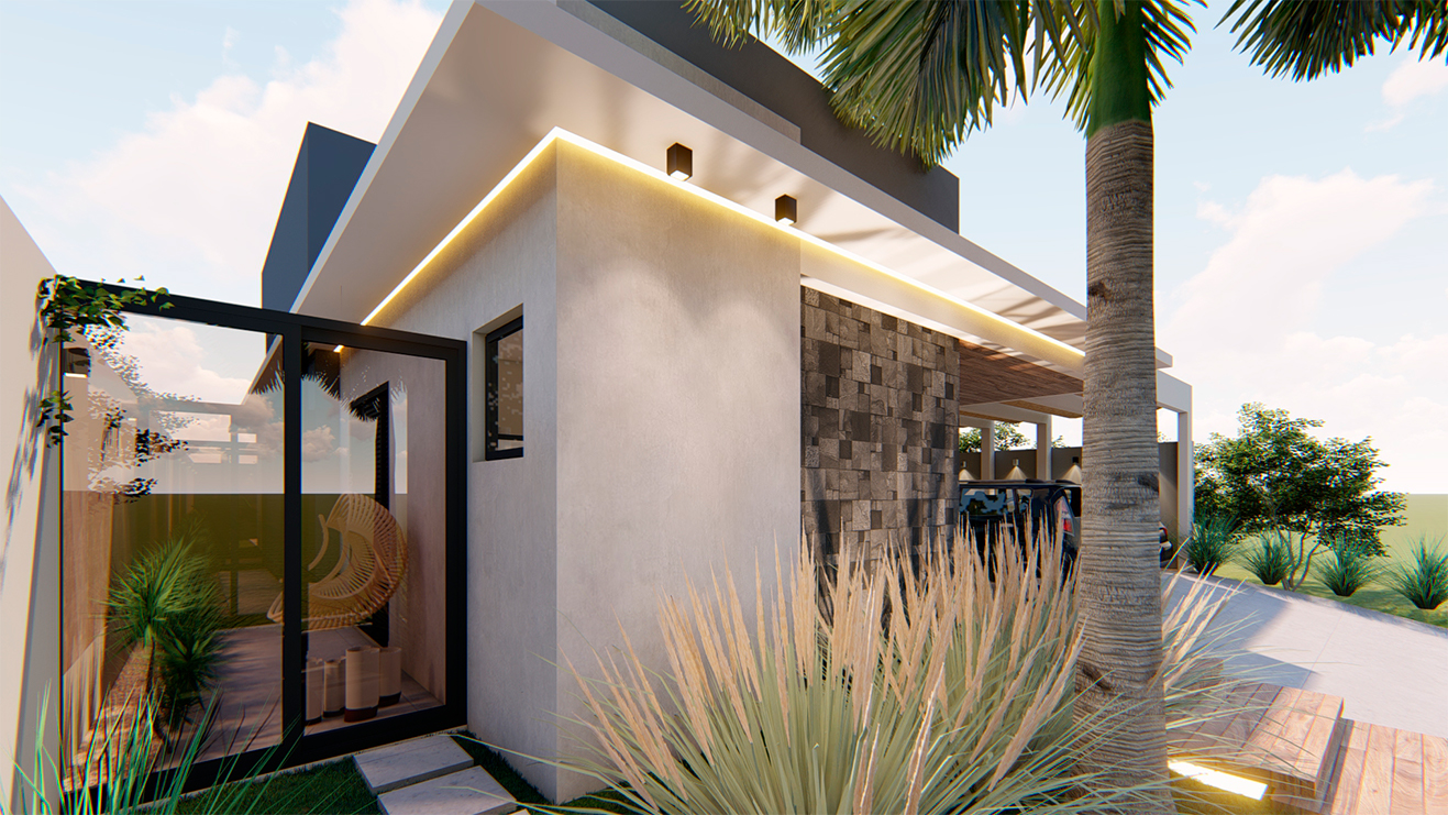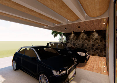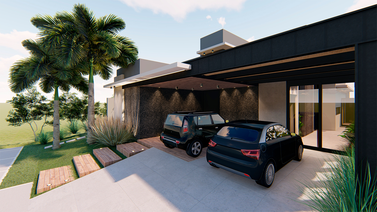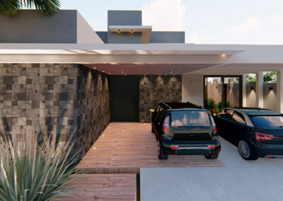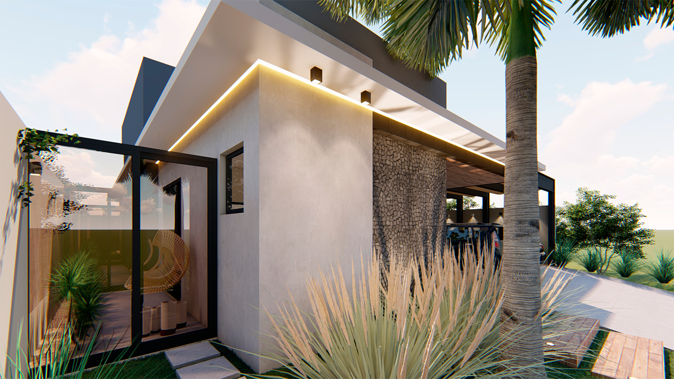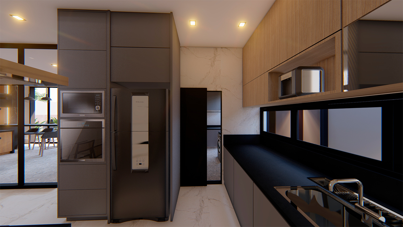 Os ambientes internos são integrados e flexíveis, com a presença de sistemas de automação que controlam iluminação, climatização e segurança. Grandes janelas e portas de vidro permitem a entrada abundante de luz natural e oferecem vistas panorâmicas. A estrutura é sustentada por elementos metálicos e concreto, criando um contraste visual entre a solidez e a transparência. O layout funcional e a integração de tecnologia refletem uma abordagem moderna e eficiente, proporcionando conforto e sofisticação.