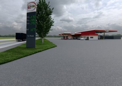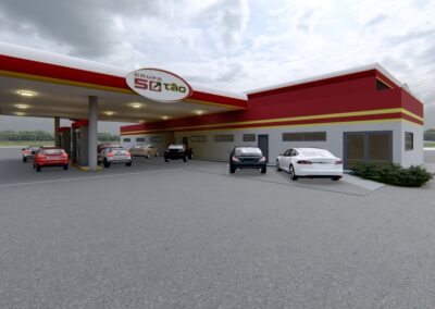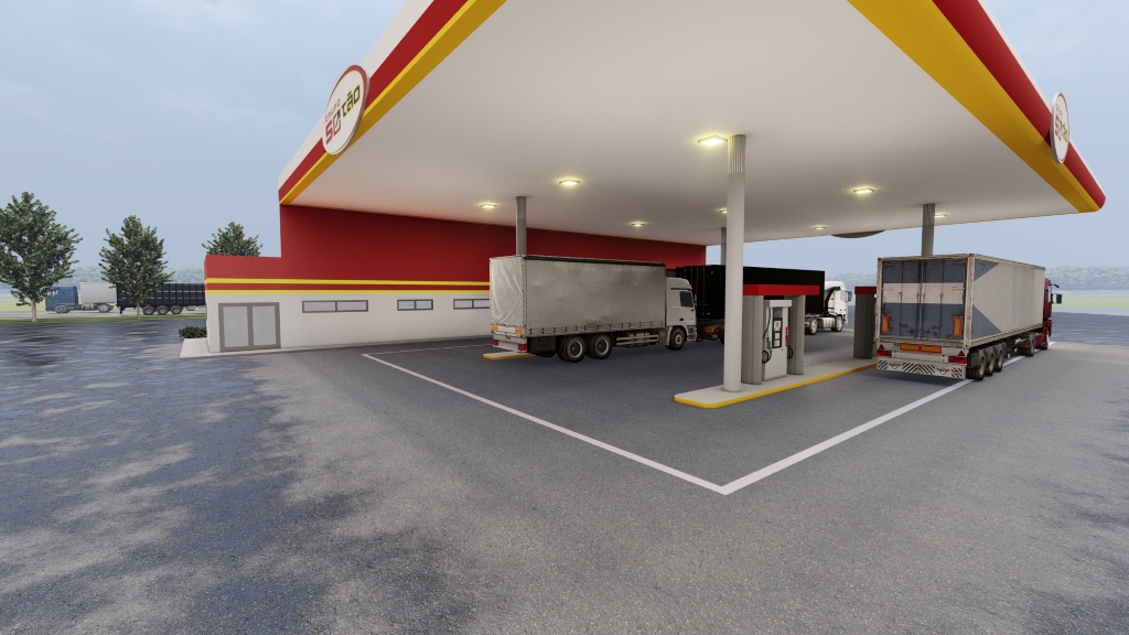 O posto 50tão é um local com lojas comerciais e estrutura ampla para caminhoneiros é projetado para oferecer funcionalidade e conforto aos motoristas de veículos de grande porte. A estrutura do posto é grandiosa, com cobertura alta e robusta, cobrindo várias as bombas de combustível, permitindo o abastecimento simultâneo de caminhões e veículos menores. As pistas de abastecimento são espaçosas, com áreas de manobra amplas para facilitar a entrada e saída de caminhões.